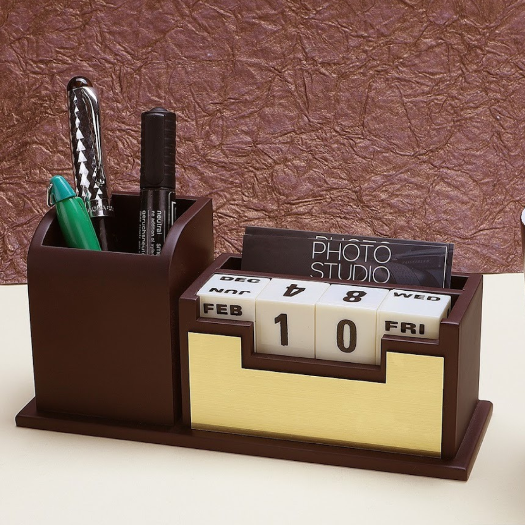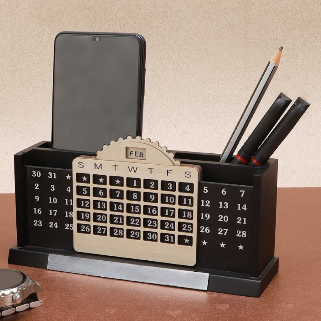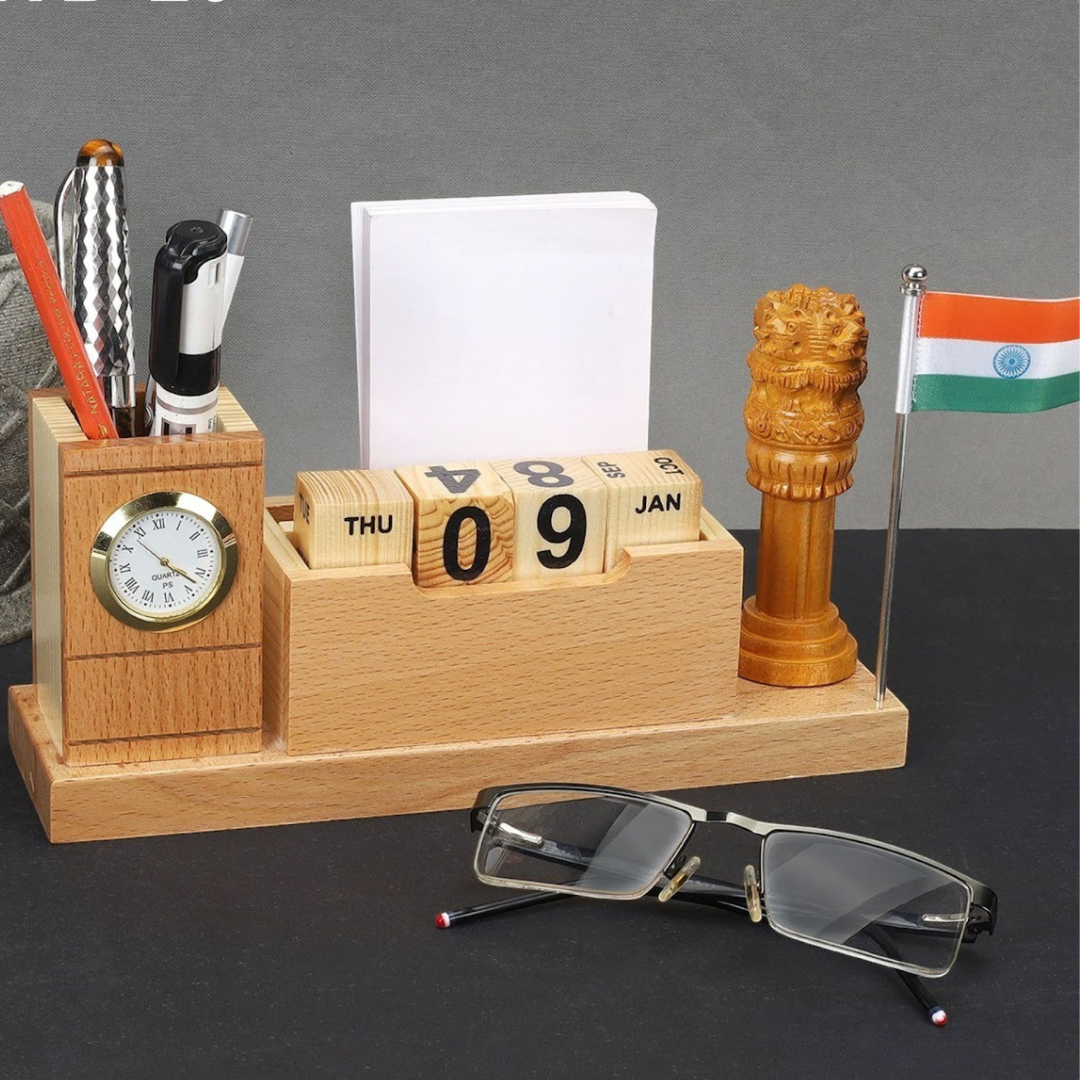 WOODEN PEN STAND WITH CUBE CALENDAR