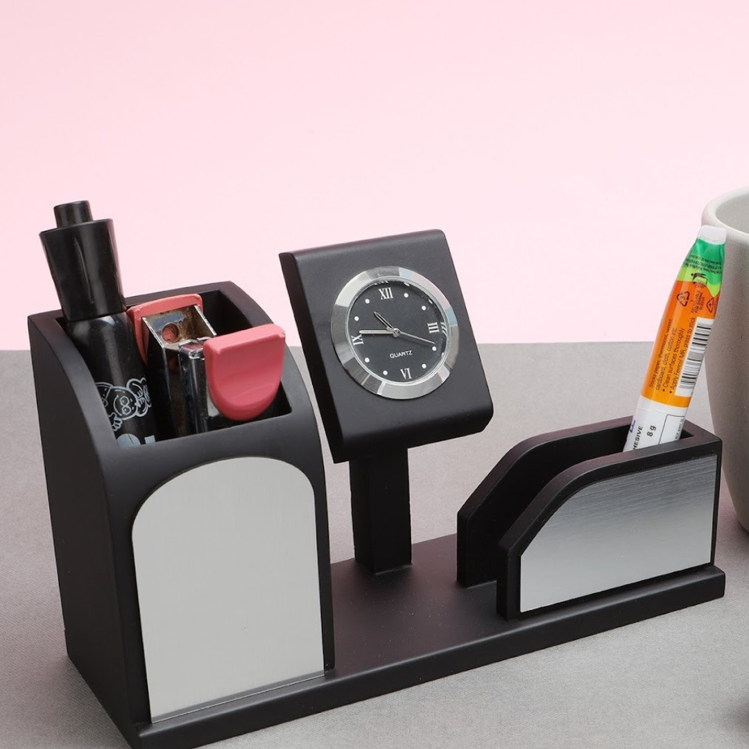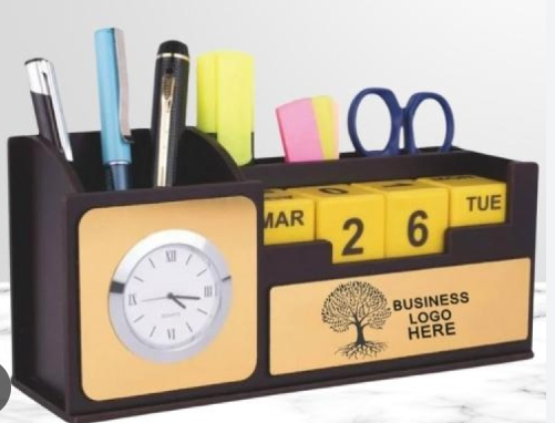 DESK ORGANISER WITH CLOCK AND CALENDAR
