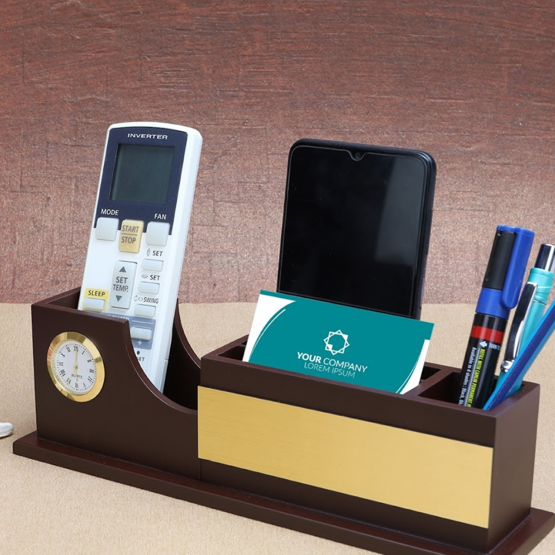 Wooden pen stand with clock
